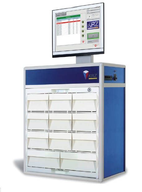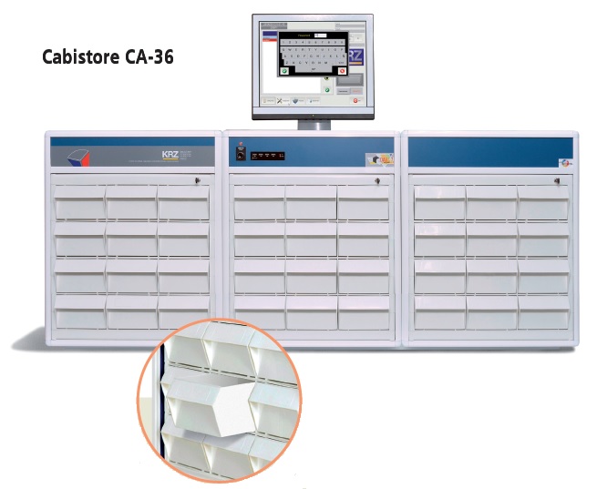Dispensador automàtic de medicaments i productes sanitaris Obertura automàtica de caixetins Caixetins combinables de 2 capacitats: 3L (15x20x10 cm) i 4,5L (22.5x20x10 cm) Extracció automàtica de cassets. Casetes d'un màxim de 12 calaixos de 3L Màxim nombre de calaixos 36 de 3L. (Cabistore CA-36) Instal·lació sobretaula o paret Control d'obertura per ordinador amb pantalla tàctil Accés als productes mitjançant password