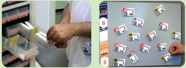 • Un senzill mètode fàcil d'utilitzar per infermeria que garanteix la rotació d'existències